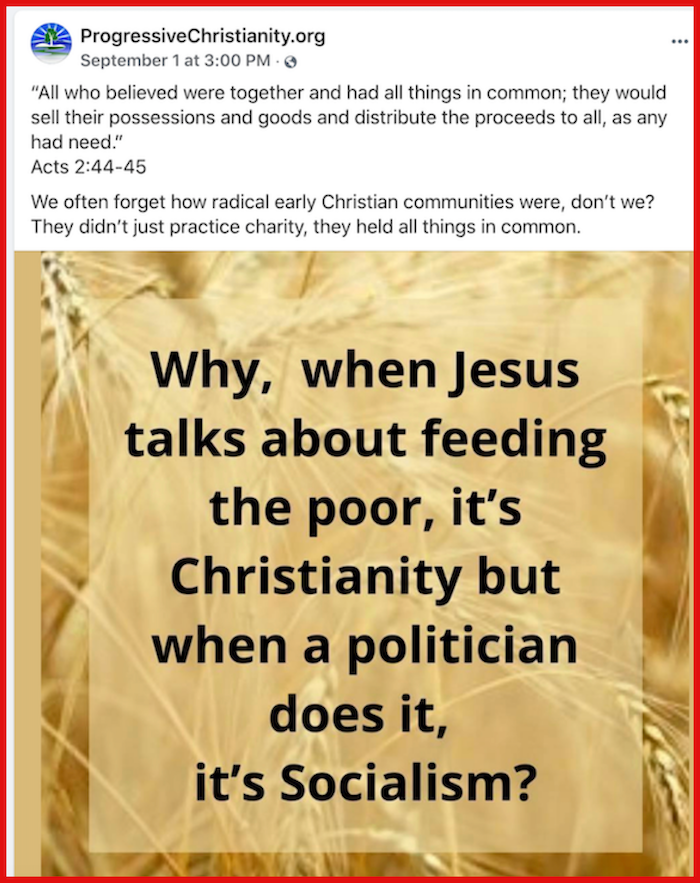 It’s been pretty obvious to me since I seriously spent four years reading the words of Jesus that his teaching have strong socialist roots. So, why are so many who claim to be Christian against any form of socialism? Just say that word and they go into the immediate attack mode.
