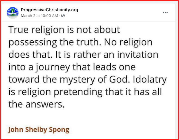 Most of my spiritual life has existed between Catholicism and Evangelical Christians, with doses of agnosticism in between. I swung in and out of these three modes for almost seventy years before I discovered my true Spiritual home. The Catholic traditions tarnished my spirituality early on by declaring that almost all my childhood buddies, and everyone else for that matter, would not be joining me … Continue reading Progressive Christianity
